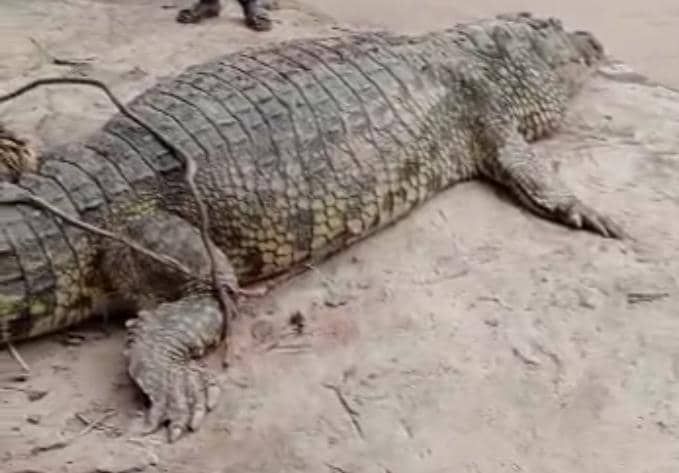 Le lendemain, déterminés à retrouver le reptile meurtrier, les jeunes du village se sont mobilisés. À l’aide d’une arme, ils ont fini par abattre le crocodile.